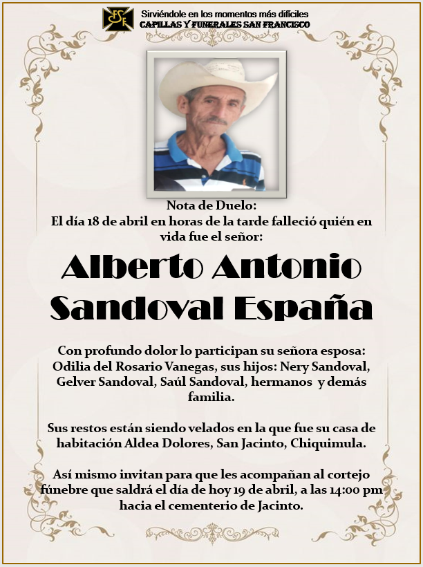 Alberto Antonio Sandoval Españapor Sanf7391abril 19, 2022abril 19, 2022 Deja una respuesta Cancelar la respuestaTu dirección de correo electrónico no será publicada. Los campos obligatorios están marcados con *Nombre * Correo electrónico * Web Comentario *