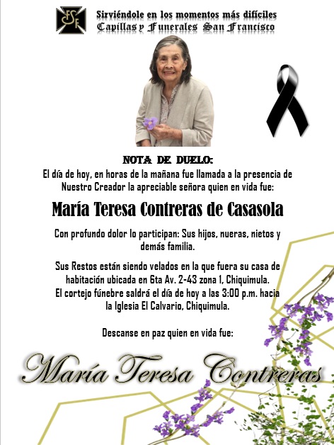 María Teresa Contreras de Casasolapor Sanf7391abril 25, 2022abril 25, 2022 Deja una respuesta Cancelar la respuestaTu dirección de correo electrónico no será publicada. Los campos obligatorios están marcados con *Nombre * Correo electrónico * Web Comentario *
