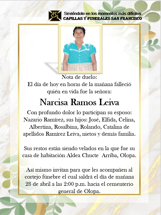 Narcisa Ramos Leivapor Sanf7391abril 27, 2022abril 27, 2022 Deja una respuesta Cancelar la respuestaTu dirección de correo electrónico no será publicada. Los campos obligatorios están marcados con *Nombre * Correo electrónico * Web Comentario *