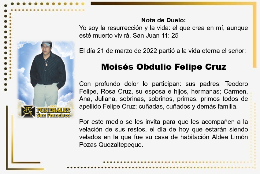 Moisés Obdulio Felipe Cruzpor Sanf7391abril 28, 2022abril 28, 2022 Deja una respuesta Cancelar la respuestaTu dirección de correo electrónico no será publicada. Los campos obligatorios están marcados con *Nombre * Correo electrónico * Web Comentario *