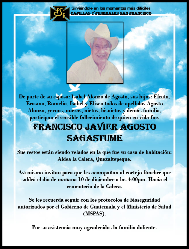 Francisco Javier Agosto Sagastumepor Sanf7391diciembre 10, 2021diciembre 10, 2021 Deja una respuesta Cancelar la respuestaTu dirección de correo electrónico no será publicada. Los campos obligatorios están marcados con *Nombre * Correo electrónico * Web Comentario *